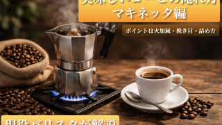 マキネッタで美味しいコーヒーを淹れる方法をバリスタ講師が解説。直火式エスプレッソメーカーの基本構造や正しい使い方、火加減、豆の挽き目、火を止めるタイミングなど初心者でも失敗しないポイントを詳しく紹介します。