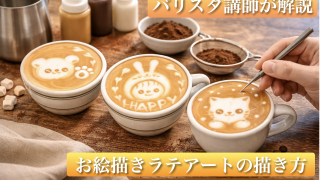 ラテアートの基本であるハートの描き方をバリスタ講師が解説。カップの中心に左右対称の美しいハートを描くコツや、初心者でも安定して描ける練習方法をわかりやすく紹介します。